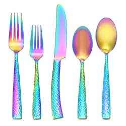 Mirror Hammered Rainbow Flatware Colorful 20 Piece